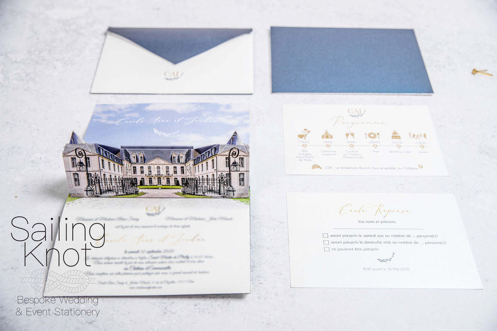 Step into a world of wonder with this extraordinary 3D pop-up invitation. Inspired by the grandeur of Chateau Erménonville, this handcrafted masterpiece unfolds to reveal the beauty of this historic Parisian venue. High-quality design, exquisite materials, and meticulous printing combine to create a truly unforgettable invitation experience, setting the stage for a wedding as magical as the invitation itself.
